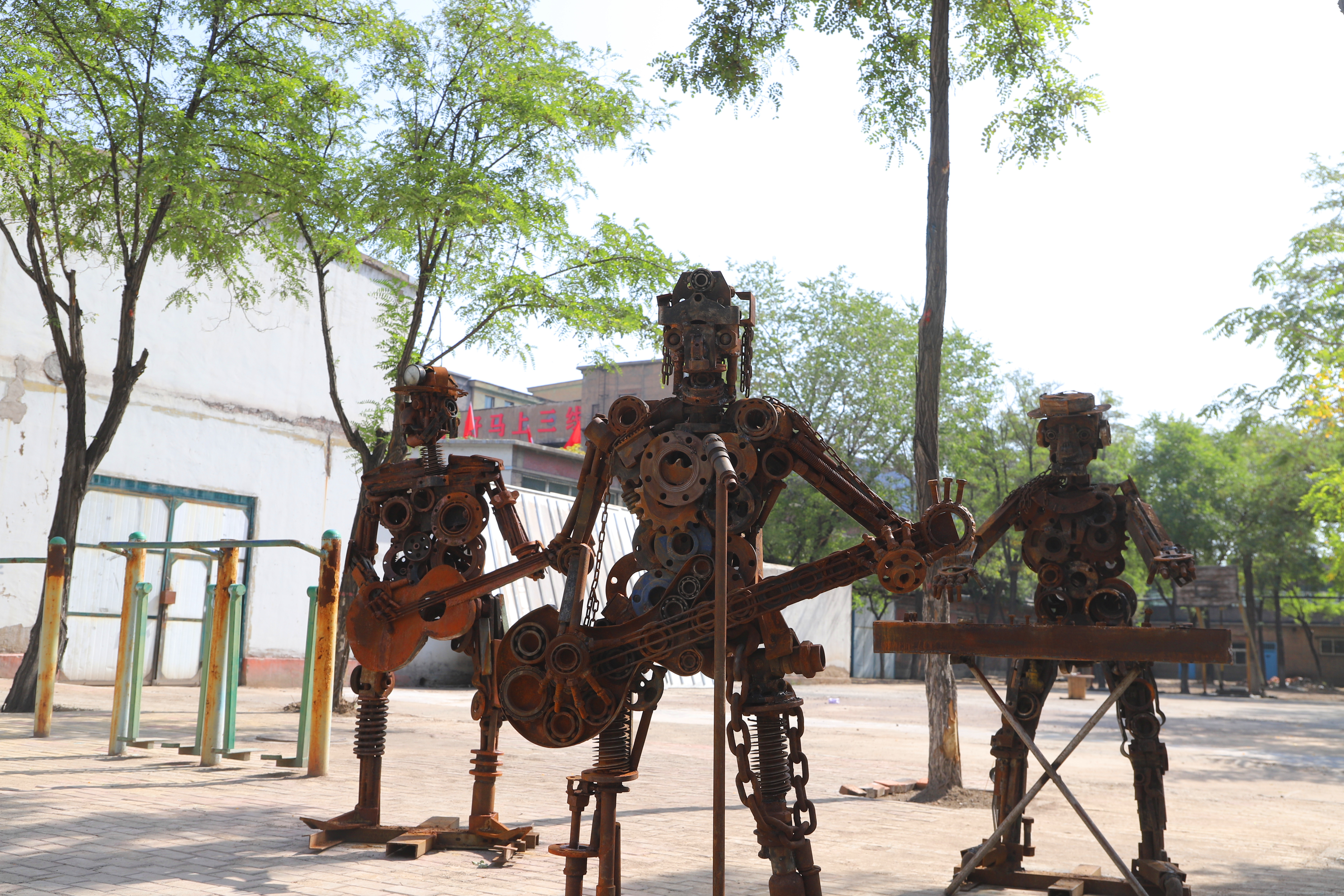 【摘要】2020年9月拍摄大武口洗煤厂工业遗址公园内的“乐队表演”工业雕塑。为了营造工业氛围,艺术家巧妙利用废弃的工业设备零件,如齿轮、链条等材料,通过焊接等工艺完成了一组工业雕塑,不仅体现了工业的厚重历史,也体现了工业系统的认真与严谨,带给游客不一样的体验。