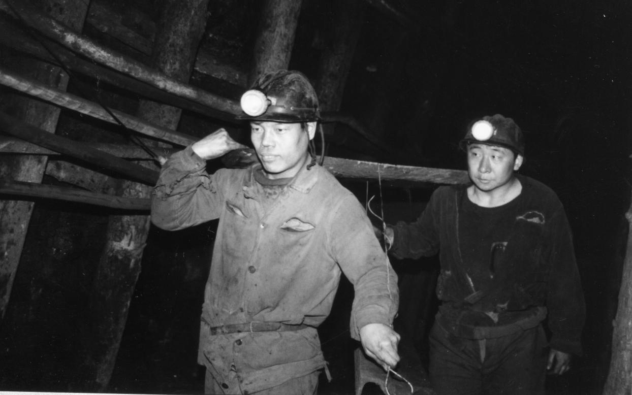 【相册名称】 矿工靠肩抬往工作面运送材料、配件