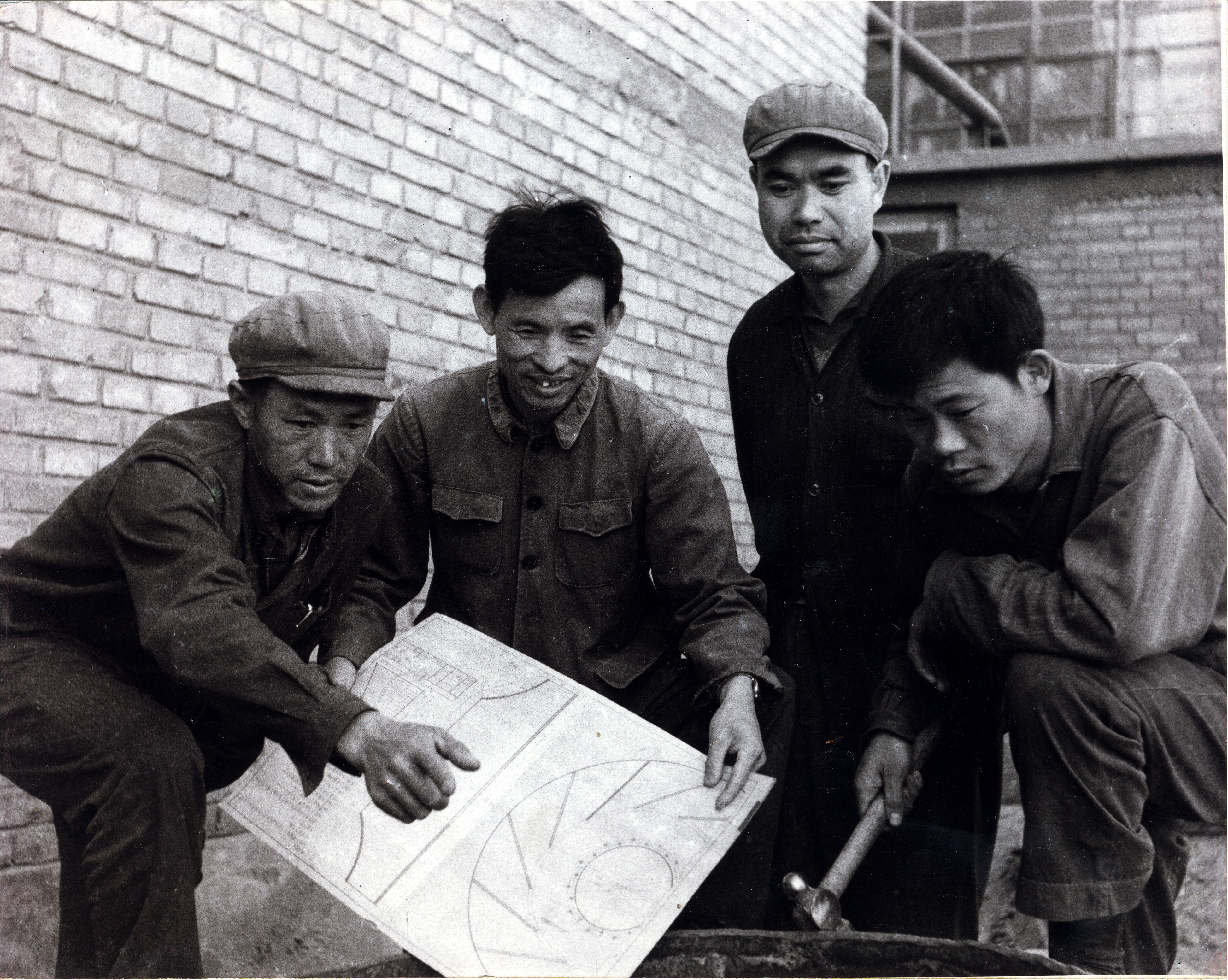 技术员正在商议施工方案