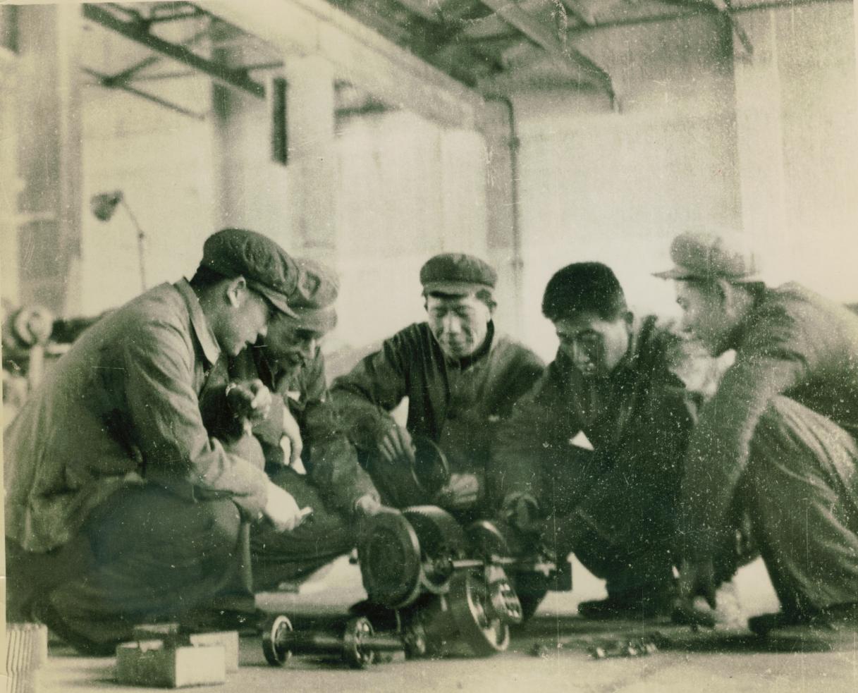 原西北煤矿机械一厂技术人员在生产现场研讨问题